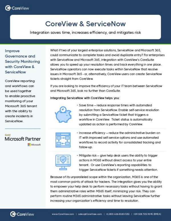 Read this datasheet to discover how to improve IT Team efficiency between ServiceNow and Microsoft 365. Contact a Abrahams Consulting LLC CoreView consultant for a free demo and to discuss flexible purchasing options.