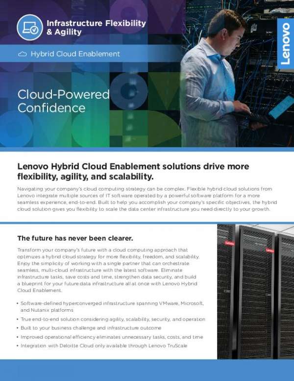 Enable flexibility, agility, and scalability with Lenovo Hybrid Cloud solutions. You can learn more about these solutions in this flyer.