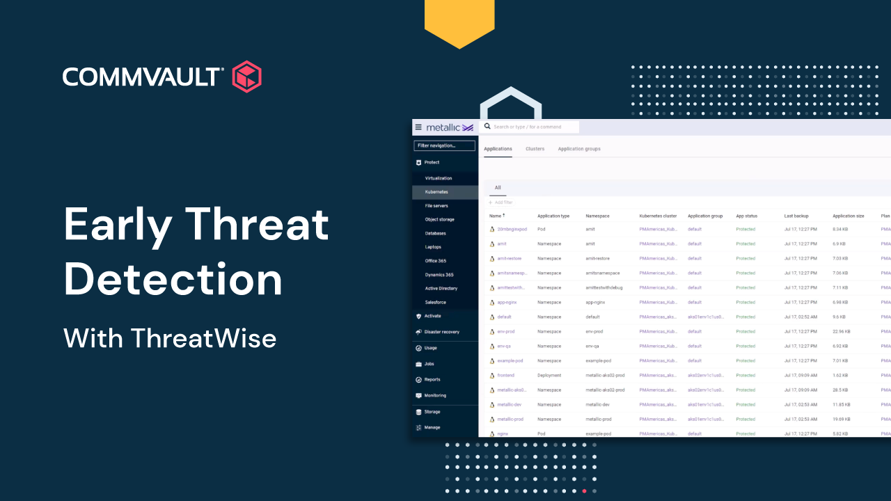 In this demo, we’ll show you how Metallic ThreatWise, integrated cyber deception from Commvault, surfaces potential ransomware threats before they reach your data.