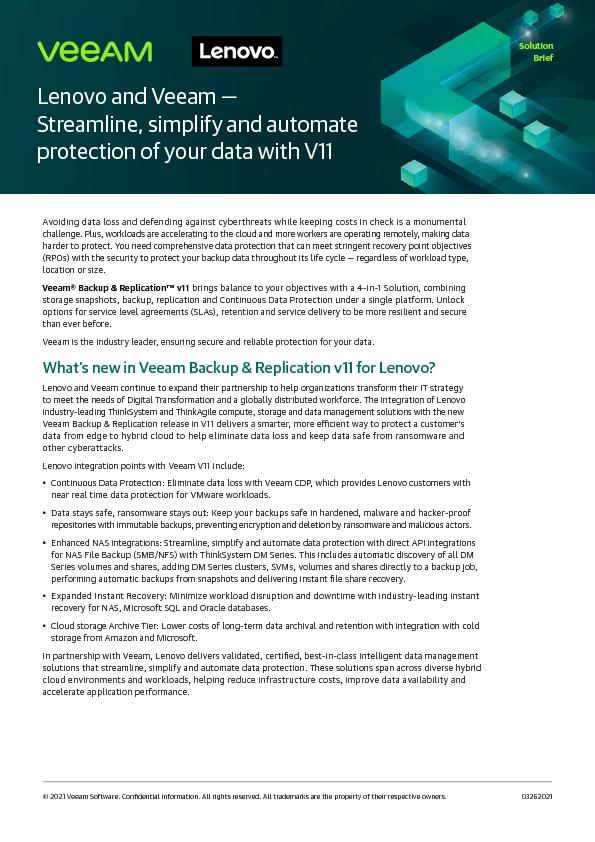 View: Lenovo and Veeam—Streamline, simplify and automate protection of your data with V11
